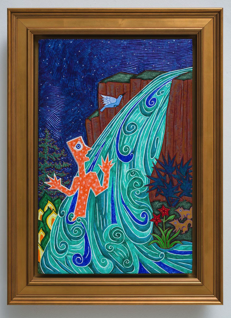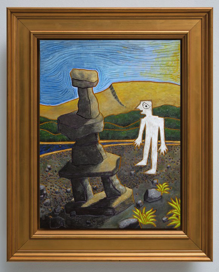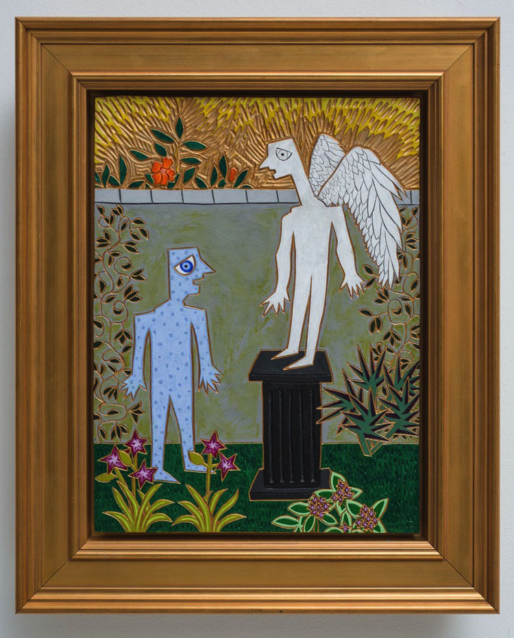 You may notice some of the figures are in color representing living figures in real time, some are painted to look like stone statuary with or without pedestals, and some look ethereal. By the time I finished this body of work I thought of the light grey figures as partly statue, partly spirit, and partly some residue of me left behind in those places depicted. Likewise those places are partly inside me.